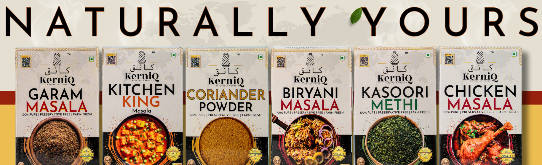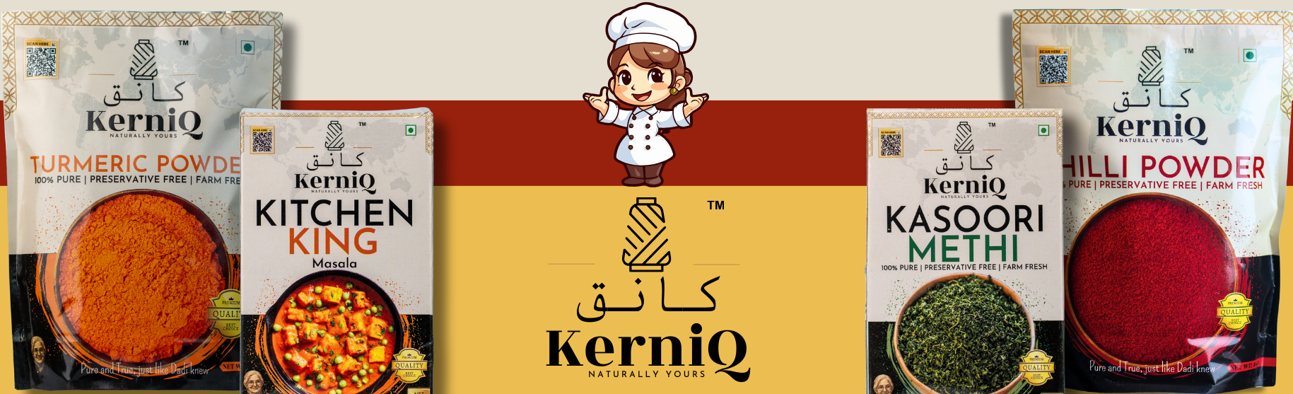 KerniQ is a spice first brand built around one simple idea: your food should taste like real ingredients, not like color and chemicals. Every batch of our spices is cleaned, sun or low heat dried, and ground in controlled lots so the natural oils, aroma and color stay intact.